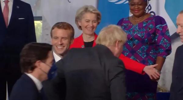 当地时间10月30日,约翰逊和加拿大总理贾斯汀·特鲁多,在参加G20峰会领导合影时迟到了。