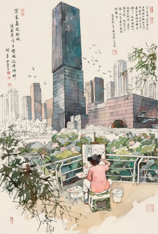 《写生嘉定新城》张安朴水彩