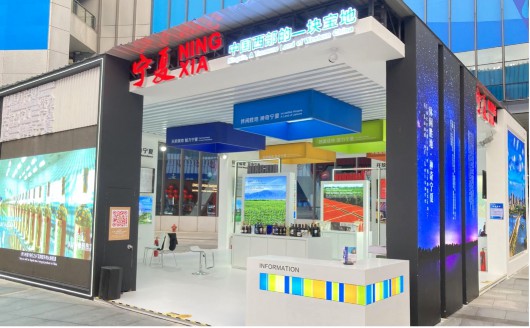 宁夏馆位于国家会展中心(上海)中央广场,展台面积108平方米。展览以“宁夏——中国西部的一块宝地”主题,从人文历史和宜居环境、丰富的物产资源和产业体系、便捷高效的开放通道、工业园区优势特色、全域旅游和风物特产等五个板块展示“美丽新宁夏”。