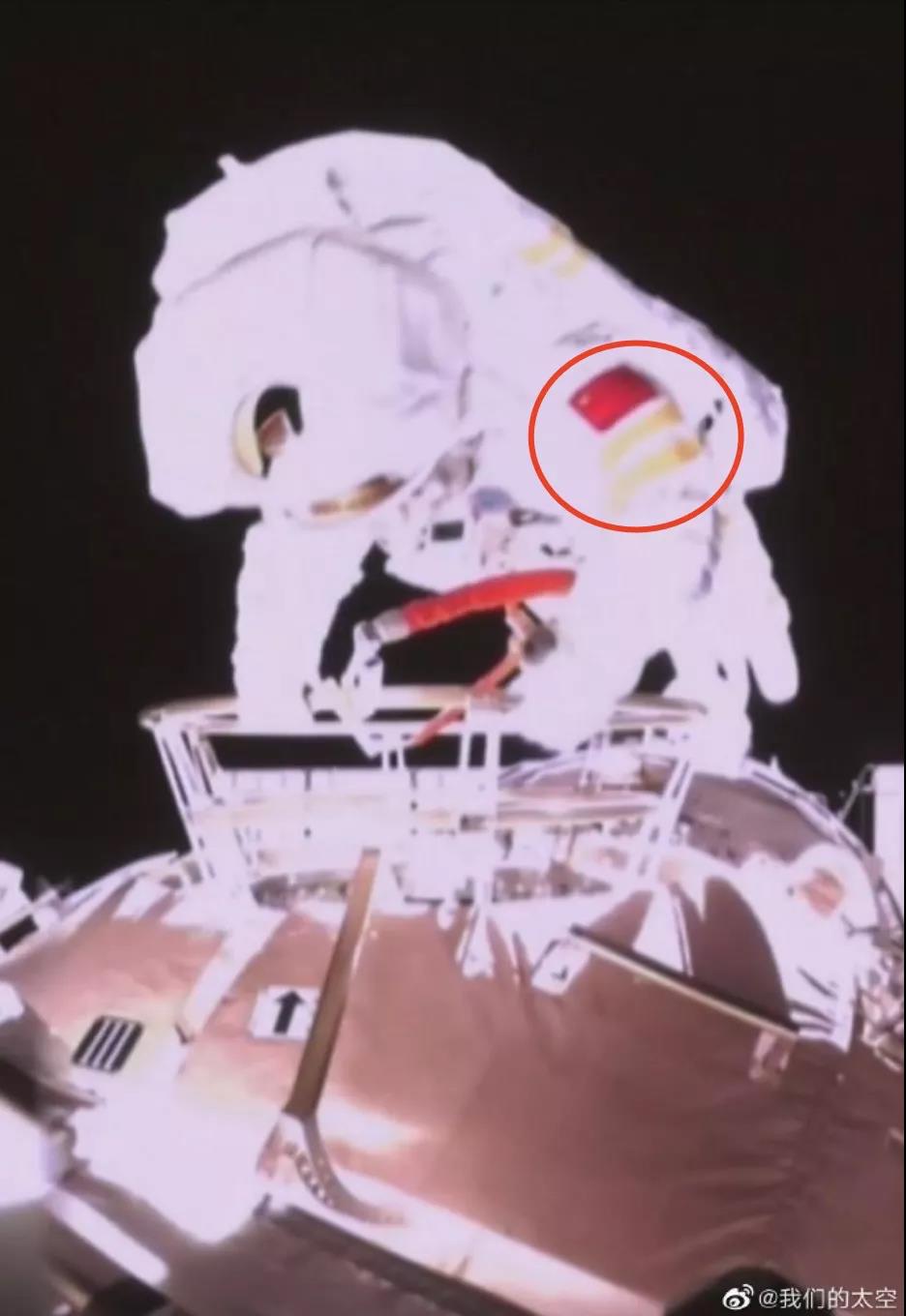 王亚平穿的新款舱外服有特殊设计:与其它舱外服不同,新款舱外服有国旗上星星的颜色。