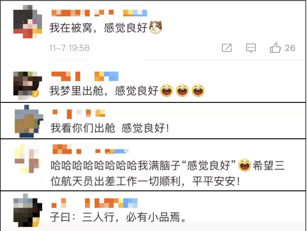 我“已” “一会” “下次”出舱,感觉良好!“感觉良好”体火了