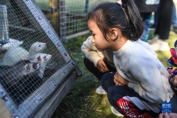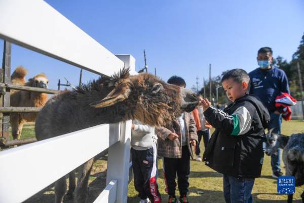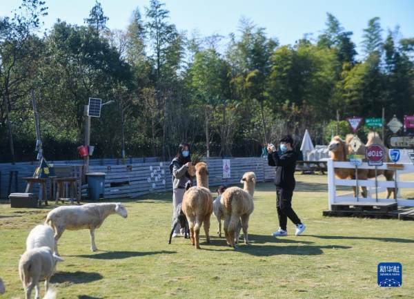 11月10日,游客在菰城村的Go Farm趣农场与动物互动。