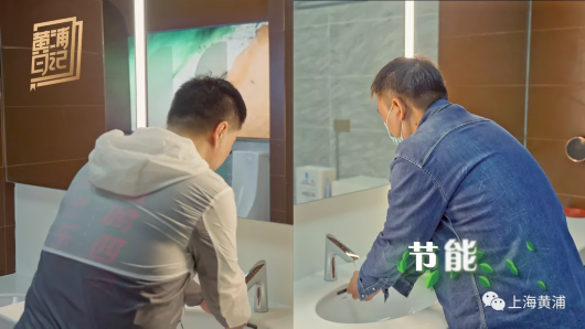 就拿便器冲洗系统来说,采用气水式高压蹲便器比普通蹲便器节水4-6升,按日使用1000人次计算,每日节约用水4吨。洗手龙头亦采用感应节水龙头。洗手龙头的水,还通过循环过滤系统进行回收再利用,用来冲洗便器。