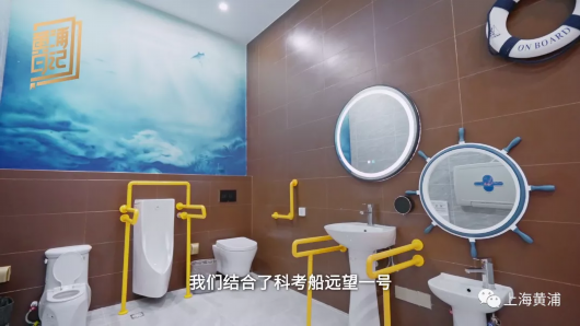 绿色环保设计,海洋科技元素点缀,这座位于远望号科考船旁边的新型节能环保公厕,一经开放,就成为了游客打卡的新地标,也是黄浦区在“厕所革命”之路上的“绿色”新尝试。