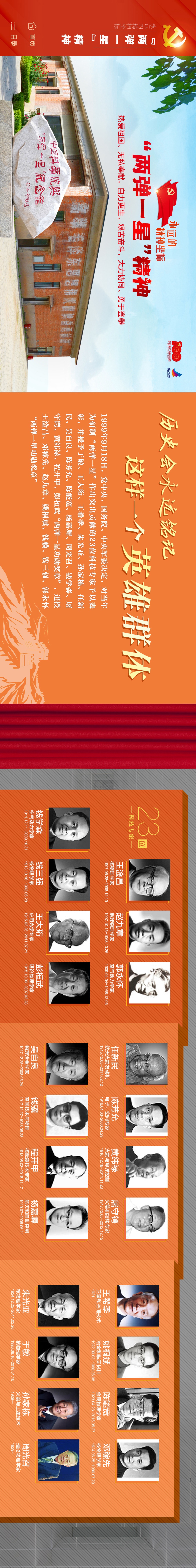 1999年9月18日,党中央、国务院、中央军委隆重表彰为我国“两弹一星”事业作出突出贡献的23位科技专家,并授予他们“两弹一星功勋奖章”,他们是投身研制、实验工作先进群体的杰出代表。