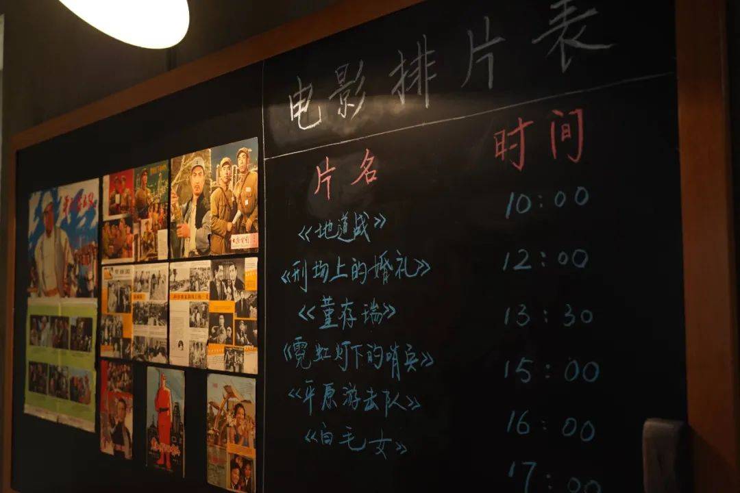 刷了漆的木条板凳、竹藤椅子、胶片电影放映机、电影胶卷收纳铁盒,那些你听过又或许只在童年才见过的老物件和影片,都在这个空间里一一重现。
