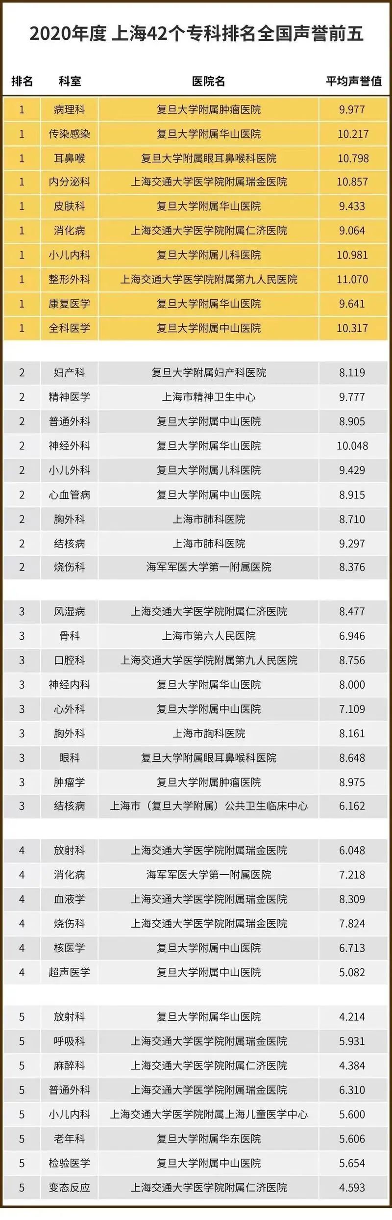 中国医院排行榜出炉!中山瑞金华山列前十,上海10个专科声誉第一