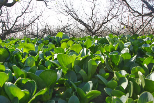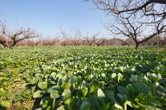 在合作社的桃园内,种植在桃树下的“矮脚青”长势正好。正因为种植在桃树下,落户新南村的文艺青年王峰笑言,这是一颗交了桃花运的青菜,一时间,矮脚青名声大涨。