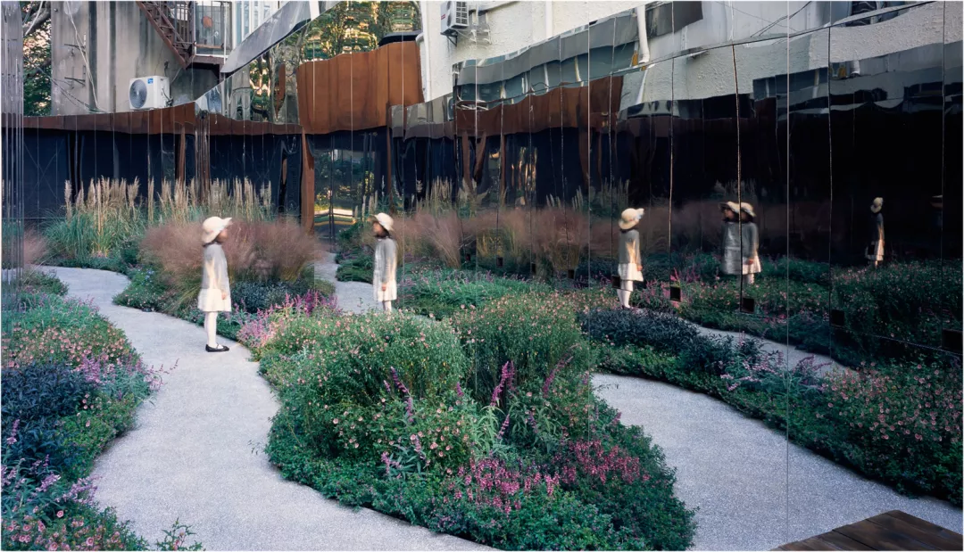 两边的镜面系统将无限反射中间的小花园,当人从中走过,仿佛步入一个无限的自然花园,从而带来一种在城市中很难得的体验。