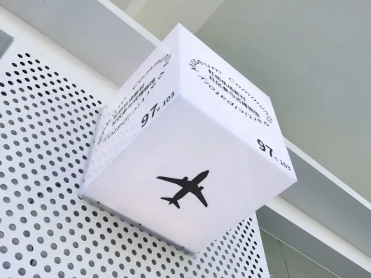 还未走进博物馆,你就会发现不少航空元素,比如整幢二层小楼以航站楼布局打造,地面还绘制了跑道和飞机图案,在橱窗展板处还陈列着25种机场人形象。