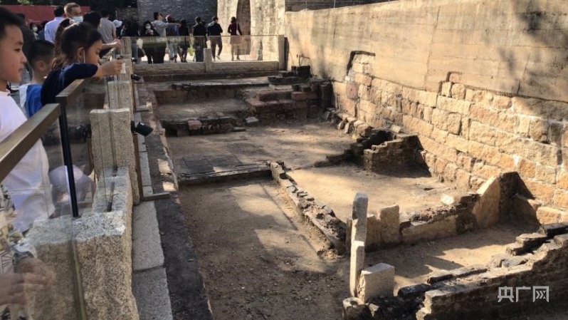 南城门外的排水沟、灶台等建筑遗存。(央广网记者黄璐璐摄)