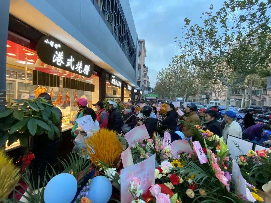 下午5点左右,菜场内外人头攒动,上海人喜欢的椒盐排条、港式腊烧、上海老式羌饼等商铺前还排起了长队……