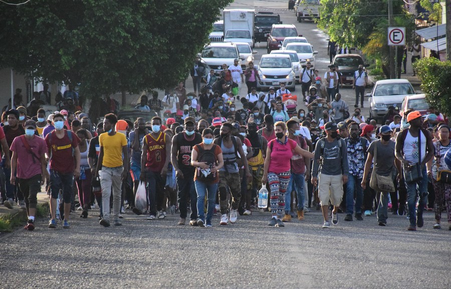 不少中美洲国家移民为了逃避贫困、暴力、动荡或谋求更好工作机会,成群结队经墨西哥北上前往美国。美国政府近几年大幅收紧移民政策,在南部边境严厉打击非法越境,大批驱逐移民。美国前总统唐纳德·特朗普执政时出台“留在墨西哥”政策,把移民遣送回墨西哥,要求他们等待居美申请审批结果。