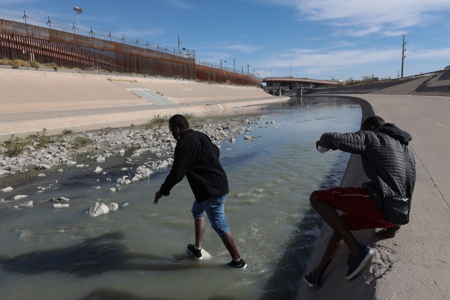 12月7日在墨西哥华雷斯城拍摄的照片显示,移民试图通过美墨边境的布拉沃河进入美国。近日,大量移民试图取道墨西哥前往美国,许多人滞留在美墨边境地区。(新华社发,戴维·佩纳多摄)