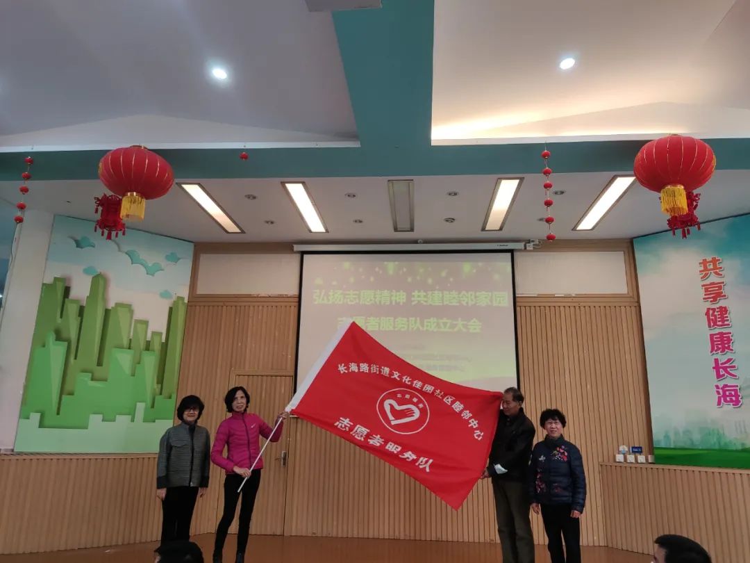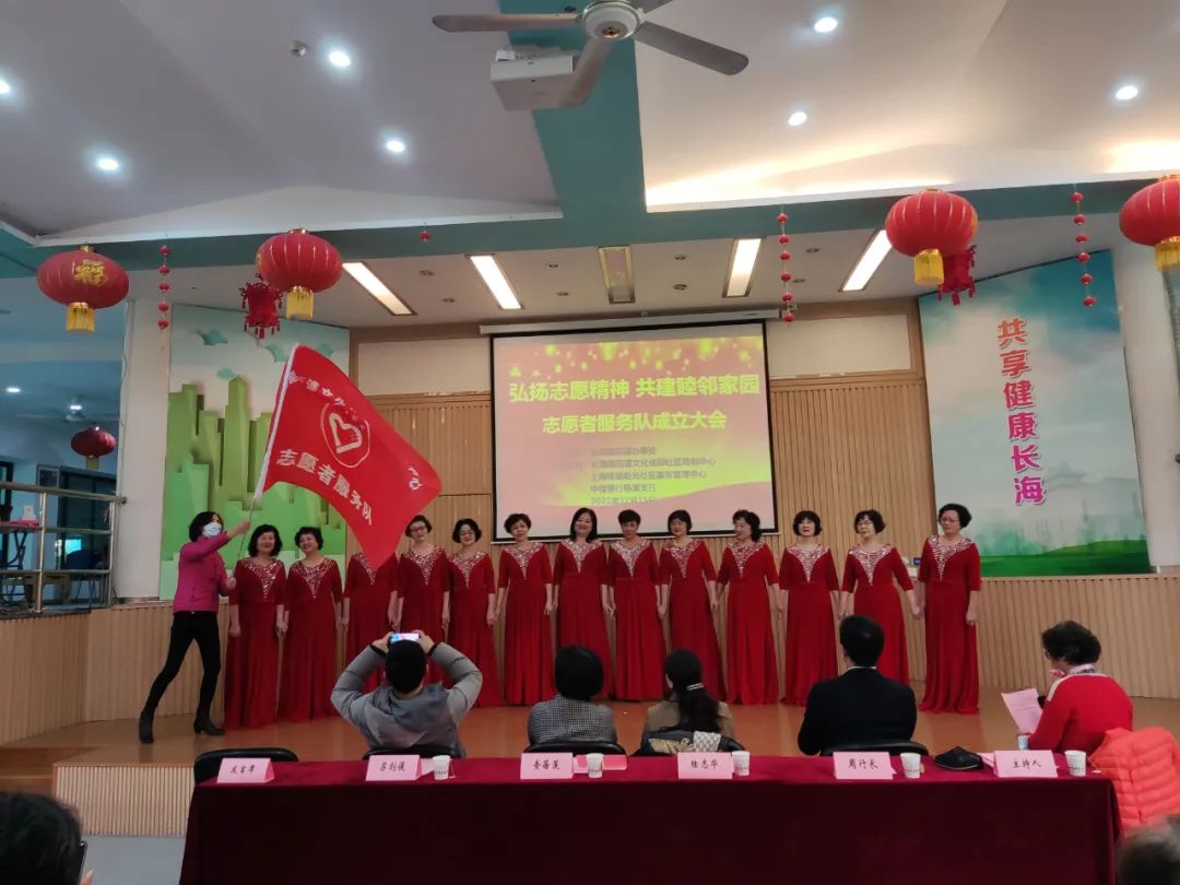 “只要人人都献出一点爱,世界将变成美好的人间……”12月15日,一声声高昂、嘹亮的歌声从文化佳园社区睦邻中心下沉式广场传出。现场,伴随志愿者旗帜的舞动,睦邻中心第一支志愿者服务队终于成立了!