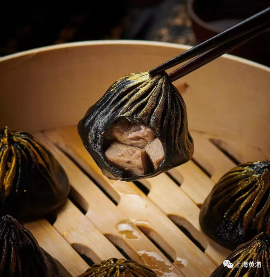 除了可以吃的“老虎头”,顾客进店还能吃到一款黑金皮肤的小笼馒头——清酒鹅肝小笼包。黑色的皮、金色的褶,轻轻咬开,里面是大块大块的鹅肝丁,可谓是“中西合璧”。