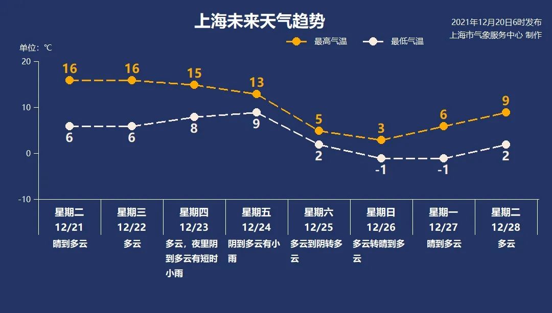 明后天(12月21、22日)会更暖一点,全天气温6-16℃,阳光依旧准时上线。预计周五(12月24日)前后受冷暖空气共同影响会有一次小雨过程,随着冷空气进一步南下,周六(12月25日)雨止 气温大跳水,这次冷空气实力雄厚还请大家及时关注。