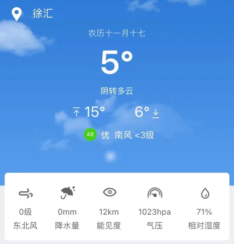 12月23日(周四):多云,夜里阴到多云有短时小雨,8~15℃