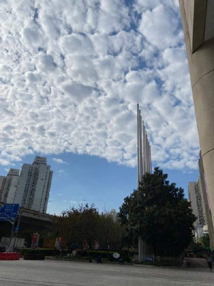 昨晚常州出现4.2级地震,今早很多上海的小伙伴一爬起来,在天空就看到了“云之大片”。有的云如一层薄薄的棉花絮毯子盖在天上,还有比较清晰的边界;还有的像一堵云墙矗立在地平线上,乍一看像台风的外围云系。