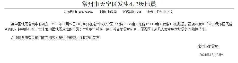 常州还会地震吗?