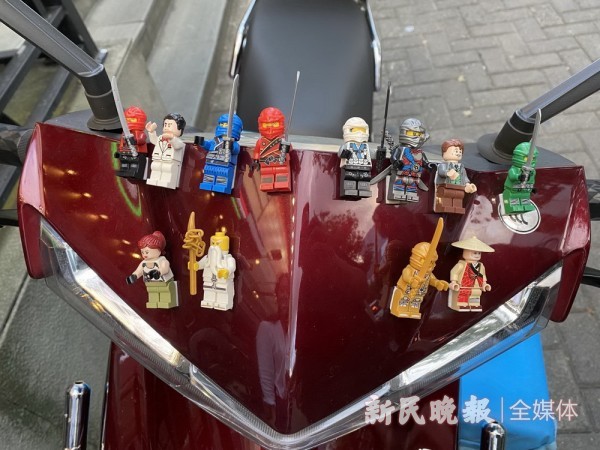 街边,外卖小哥的电动车车头上粘满了玩具公仔。快乐,有的时候就是这么简单。首席记者 刘歆 摄