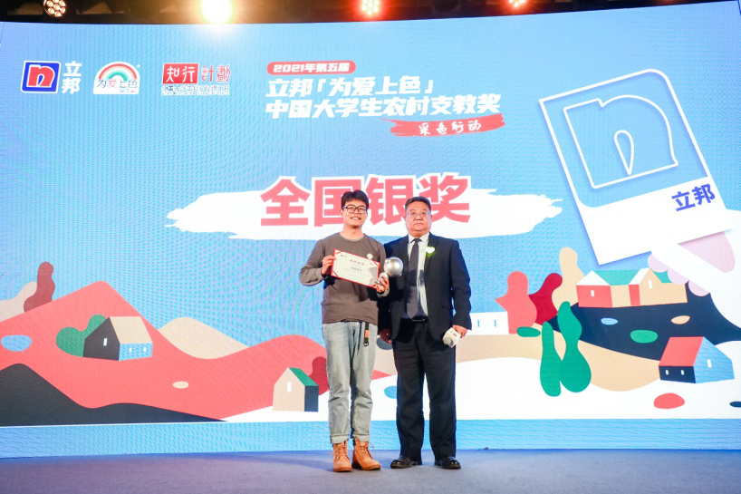 立邦中国集团品牌公关中心总裁蔡志伟与支教奖评委周珂老师为金奖代表颁奖