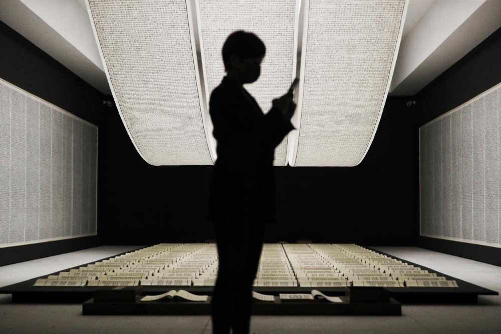 最初以印刷属性面世的大型装置《天书》,耗时四年完成。徐冰以活字印刷术的重组形式,制作出一百二十套“典籍”。