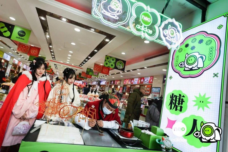 混搭CP也是时下的潮流。据悉,12月27日起至元旦期间,adidasneo携手百年艺术品牌朵云轩等老字号打造快闪空间,用年轻新方式展示传统文化土特产,开展“玩乐土特产”集市,实现“脑洞对接”的跨界文化快闪活动,让生活潮流与本土风味相互碰撞,致敬本土文化。