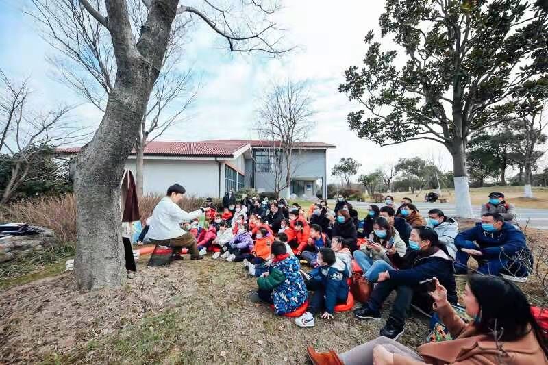 元旦当天的这场“花儿的教室”亲子阅读活动,更是突破空间的限制,书房外,孩子们静静围坐在草坪上,聚精会神地聆听《公园里的声音》绘本书,情景交融,好一番诗情画意的美好亲子共读时光。