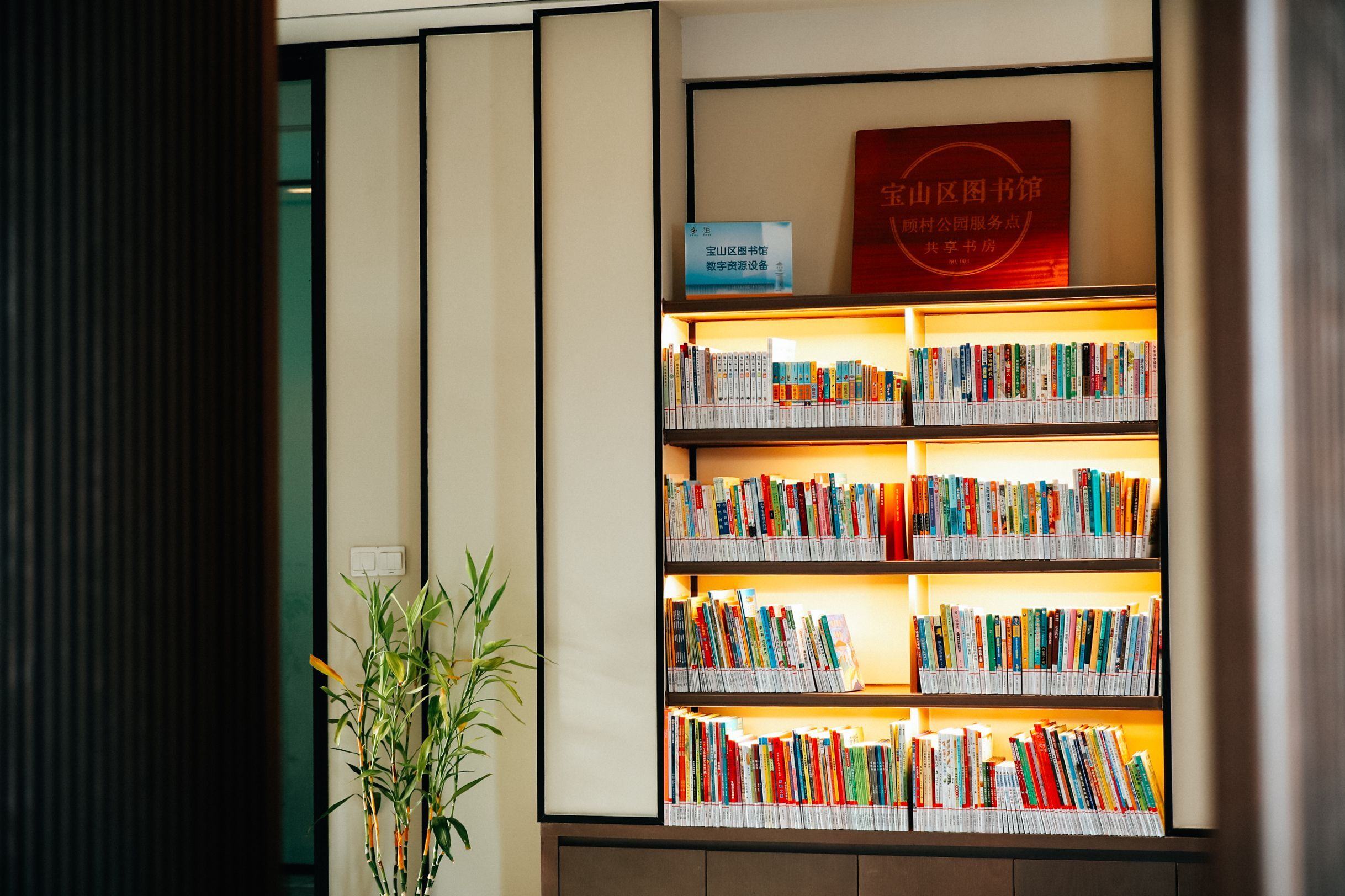 坐落在湖光绿影中的共享书房,是由宝山区图书馆与顾村公园合作共建,集图书借阅、学习教育、阅读活动于一体的公共阅读空间。内设成人阅览区和亲子阅览区,藏书3000余册,涵盖文学、历史、科学、经济等多类书籍,并配备电子书、有声读物、新闻资讯等丰富数字资源。共享书房内,市民可享受到与公共图书馆同等的规范服务,凭本人身份证原件即可办理“一卡通”读者证,也可通过自助借还设备外借、归还本市所有“一卡通”系统的图书。