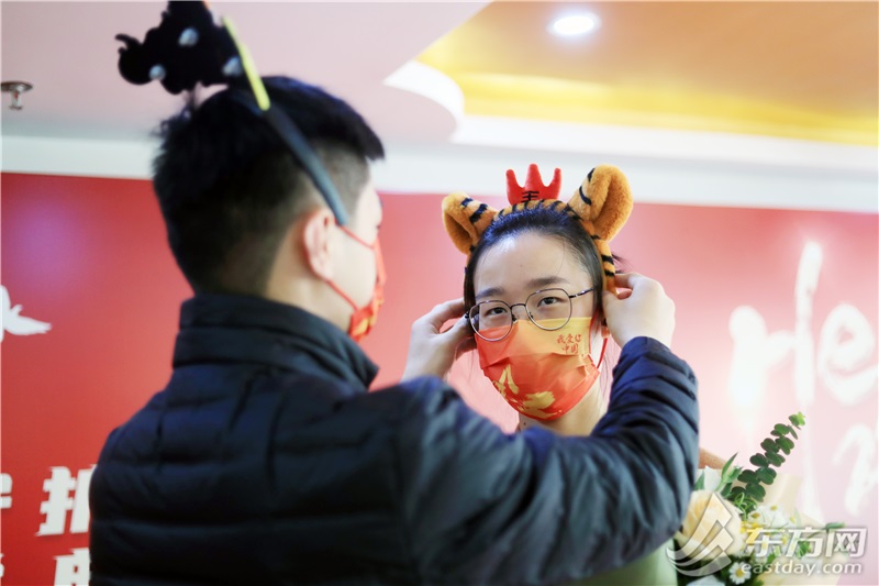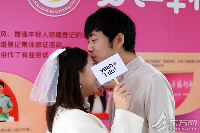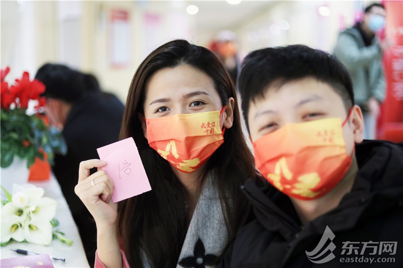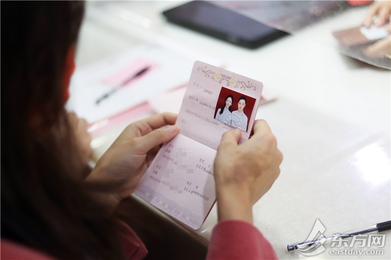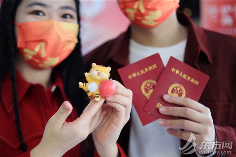 现场竞答环节,每对新人以男女各一方形式进行抢答,完成10道题的抢答,回答正确率高的即为胜方,并可以抽取虎年盲盒一份。这样生动、活泼的形式,让不少“95后”新人跃跃欲试,排队来体验。“我们没想到领证过程这么丰富,刚才答题的时候,才发现对《民法典》有些条款确实还不是特别了解,主办方特别送给我们一本《民法典》,我觉得现代女性在走入婚姻前,确实需要有很好的法律意识,才能真正保护好自己。”竞答后获胜方的木木告诉记者,此前也一直在关注《民法典》,经常在微博热搜上看到一些亮点条款,参加这个活动非常有意义。