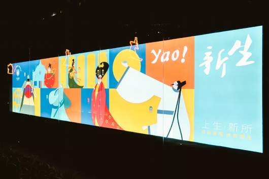 唐风门头、上百中式灯笼、唐朝月舞造型灯光、超萌Q版唐人IP形象艺术装置……当国潮文化邂逅西式建筑风格,上生·新所变得别有一番韵味。