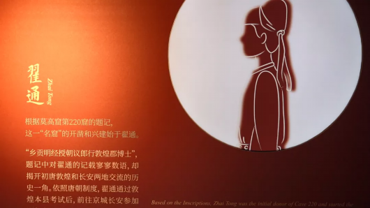除了唐“潮”场景,一场敦煌研究院首次官方授权指导的沉浸式全景光影展览也在这里举行。