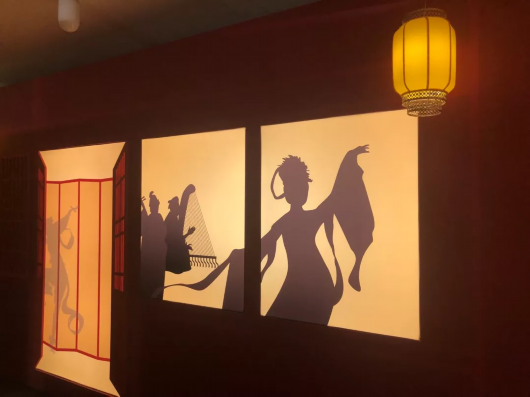 这里还有一条走廊,两旁是光影透射出的长安人家生活场景。你可以在这里拍照打卡。