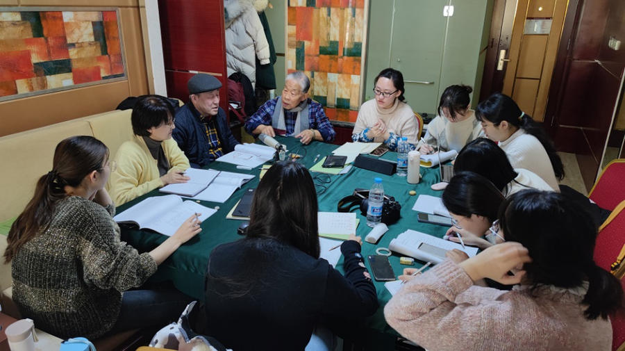 1月2日,走进潍坊安丘一家酒店的客房,客房内原有的沙发被两张拼接在一起的桌子代替,桌子上摆满了装订成册的研究资料和电脑、相机等录音录像设备。山东大学文学院岳立静教授和朱瑞祥老师正坐在学生中间,就某个潍坊安丘方言词汇展开讨论。