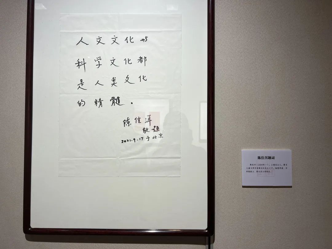 尤其这次特别展出了宝山籍著名科学家、中科院院士、北京大学原校长陈佳洱题词:人文文化与科学文化都是人类文化的精髓。