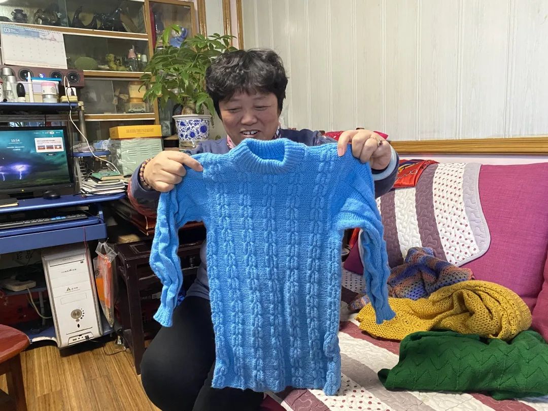“这件衣服大概适合7岁左右的男孩穿。”巧手妈妈龚兰雅家住杨浦区殷行街道,这件蓝色毛衣刚刚完工不久,龚兰雅说,自己用了一个月时间把它钩织完,平角针太单调,还特地在毛衣袖子上下了功夫,希望孩子们能喜欢。
