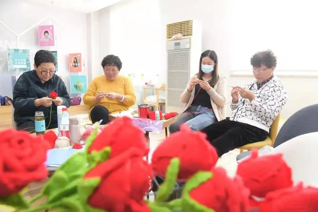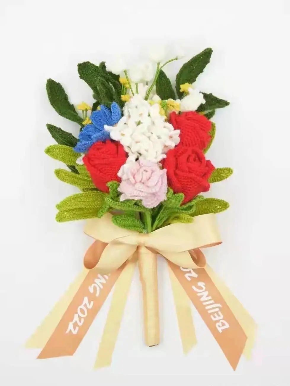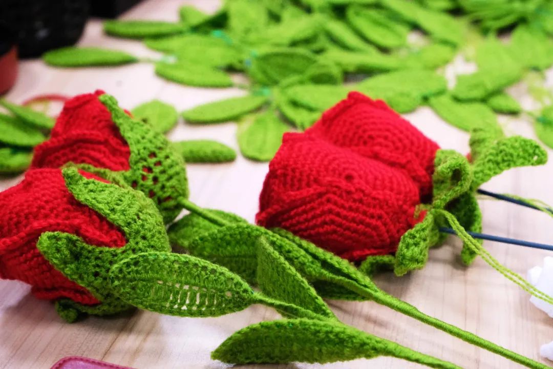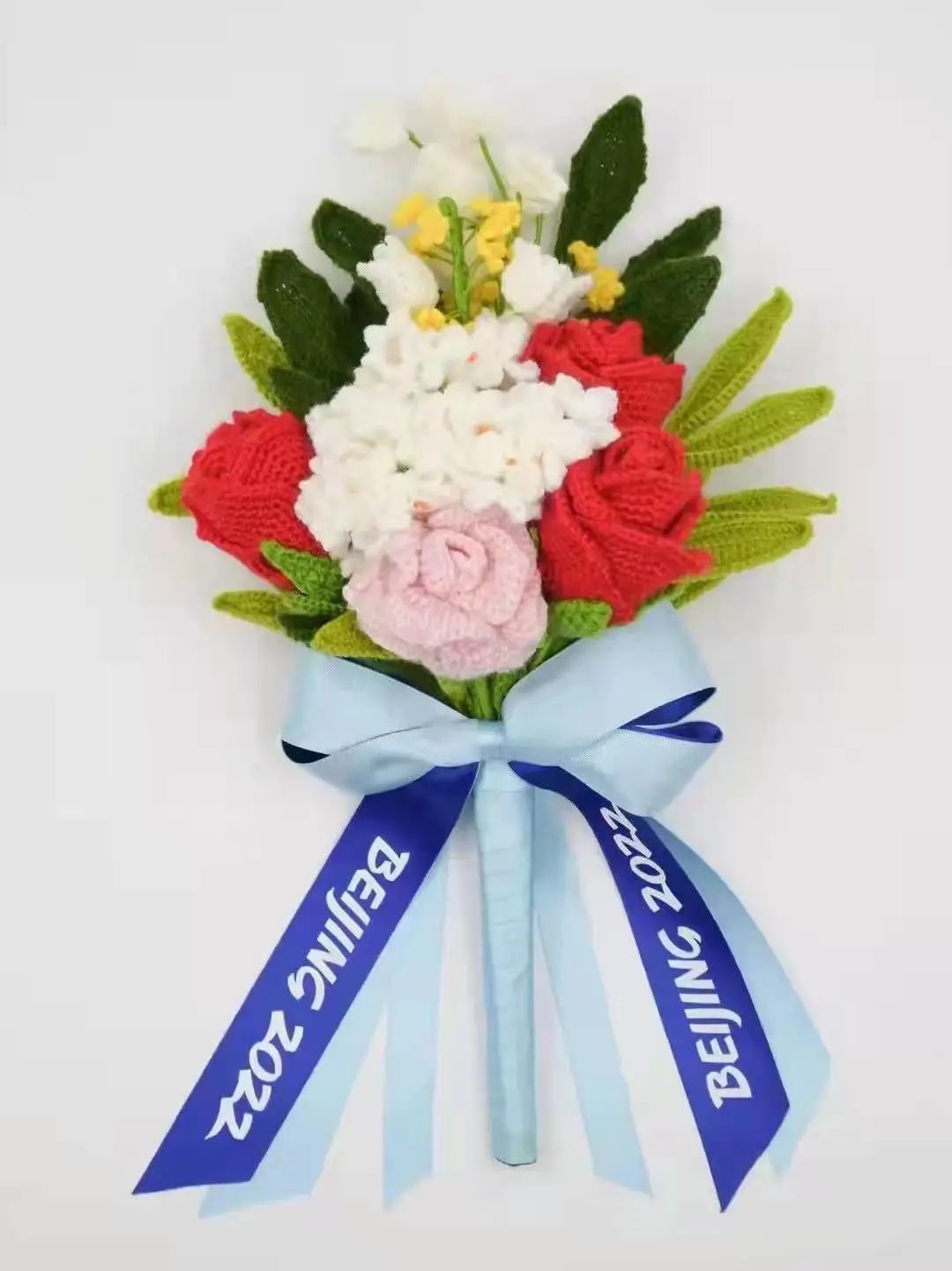 2022年北京冬奥会和冬残奥会颁奖花束以海派绒线编结技艺钩编而成的绒线花花束代替传统鲜花,而这些绯红玫瑰背后的制作巧匠就是一群阿姨妈妈,她们来自杨浦区巧手妈妈工艺坊。