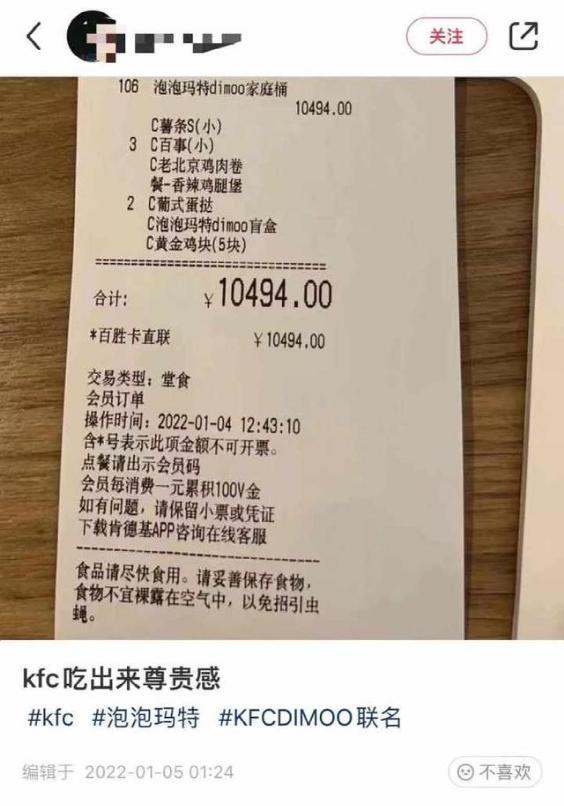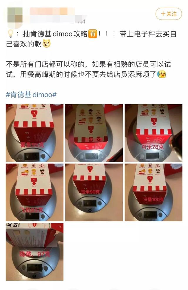 为了集齐全套肯德基盲盒,粉丝绞尽脑汁。有人带上电子秤,用上了CT机、X光设备,有人则不惜一次性斥资10494元购买106份套餐。