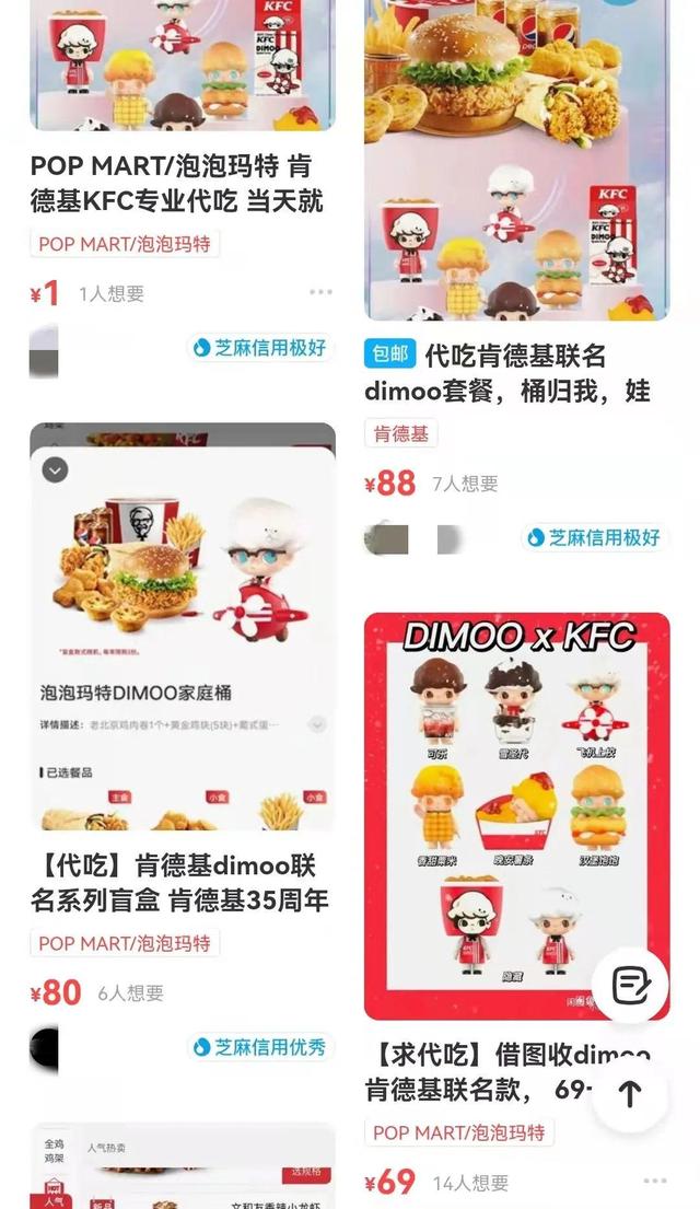 据了解,肯德基近日推出与泡泡玛特联名款盲盒套餐,这类盲盒在各大门店供不应求,几乎是一上线就被售空。