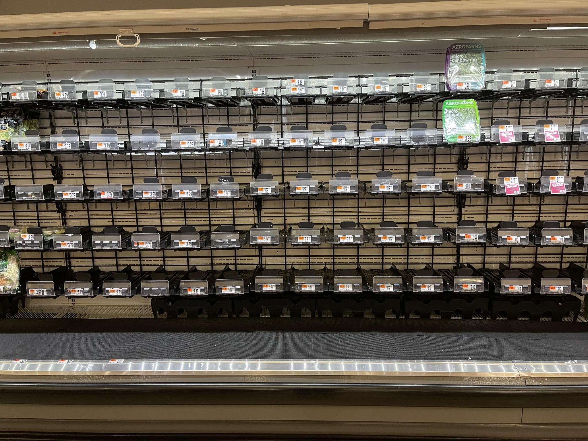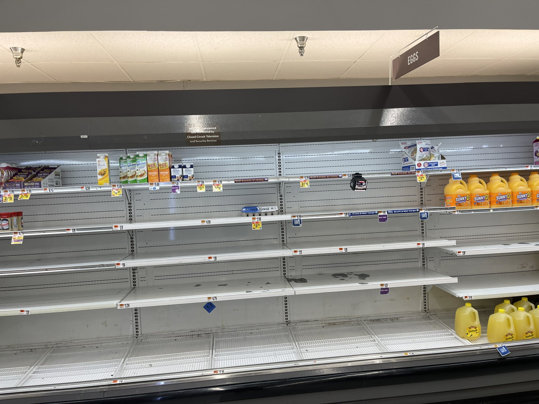 许多购物者一口气说出了他们找不到的食品,从牛奶到饮料再到农产品:“肉、蛋、奶制品、面包……所有的东西都卖光了。”