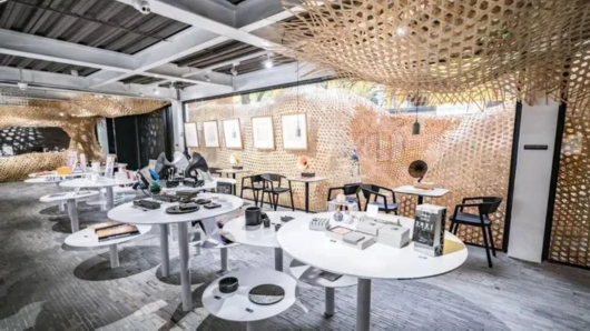 初冬的第一抹书香,在智慧湾科创园很轻易便可寻到。艺术之桥空间门口蜿蜒至室内的竹编“山水”空间显眼得像一块指示牌,似乎在说:“这里是个文艺十足的地方,你确定不进来看看吗?”