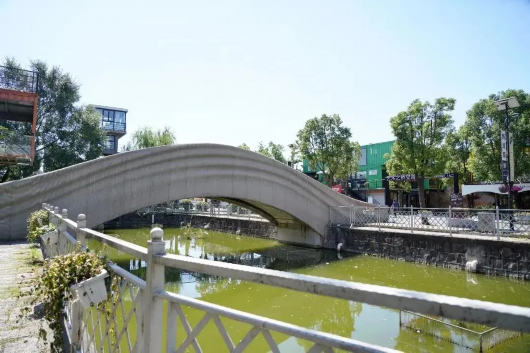 逛完博物馆,不妨去走一走园区内世界最大规模3D打印混凝土步行桥。这座全长26.3米的步行桥,是利用3D打印混凝土技术分别打印出桥梁各个部件再拼装完成的。桥身姿态飘逸,一气呵成,上去行走感受科技带来的不可思议~