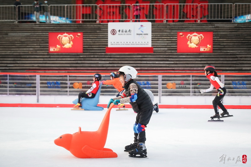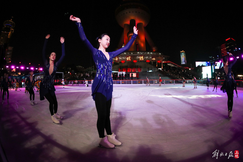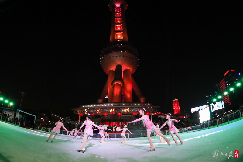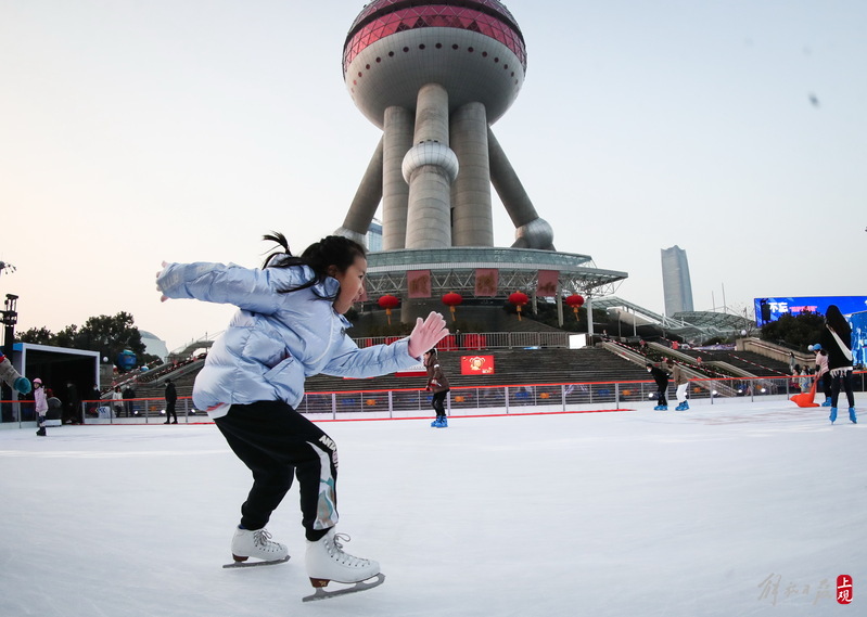 东方明珠脚下有了户外冰场,一起感受滑冰迎冬奥