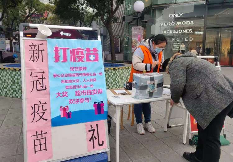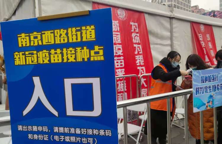 一张桌子,一两位身穿黄马甲的工作人员和志愿者……在大宁路上,记者现场看到,几百米的路段上就设有4个疫苗接种信息登记点,方便市民进行接种信息登记,同时引导市民前往接种点打疫苗。