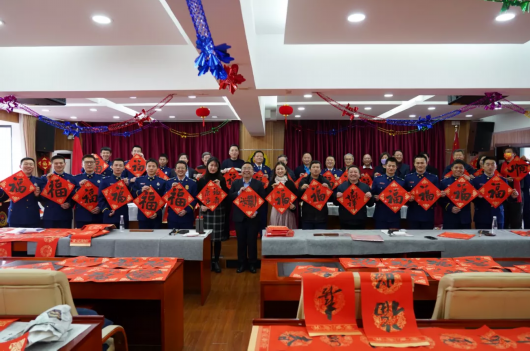 “一腔赤诚解难题,满面春风办实事”“大任扛肩,小事诚为大事;民生载道,初心即是民心”“对酒歌盛世,举杯庆丰收”……1月20日上午,一张张洋溢着喜气的大红福字,一幅幅翰墨飘香的新春对联,让黄浦区车站消防救援站内暖意融融,充满欢乐的新年气息。