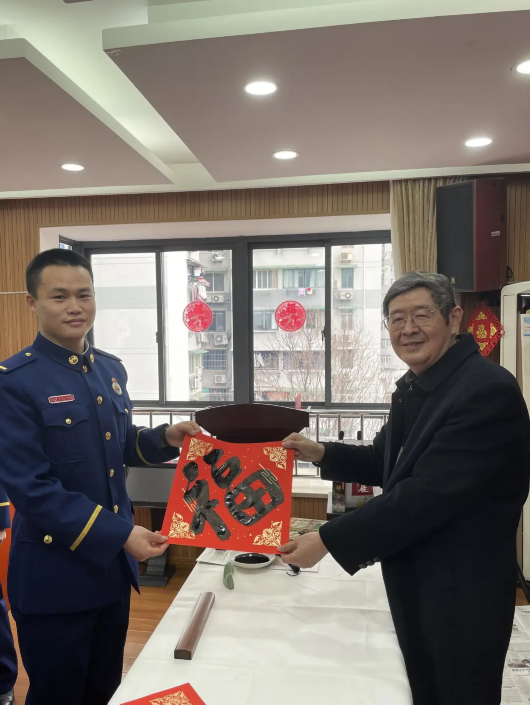 黄浦区车站消防救援站指导员陈祥康告诉记者:“面对即将到来的新春佳节,救援站43名消防救援人员已经严阵以待,誓将守护好社区的安全。”陈祥康表示,此次由书法家们赠送的福字、春联,除了将为救援站增添节日氛围,在救援站走访社区时,也会把这些祝福分享给社区居民和老党员、老战士们。
