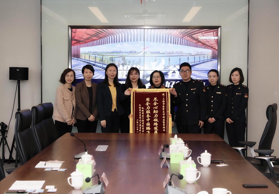 奉贤的“妈妈式”服务令人暖心!瓴路药业集团向东方美谷集团赠送锦旗