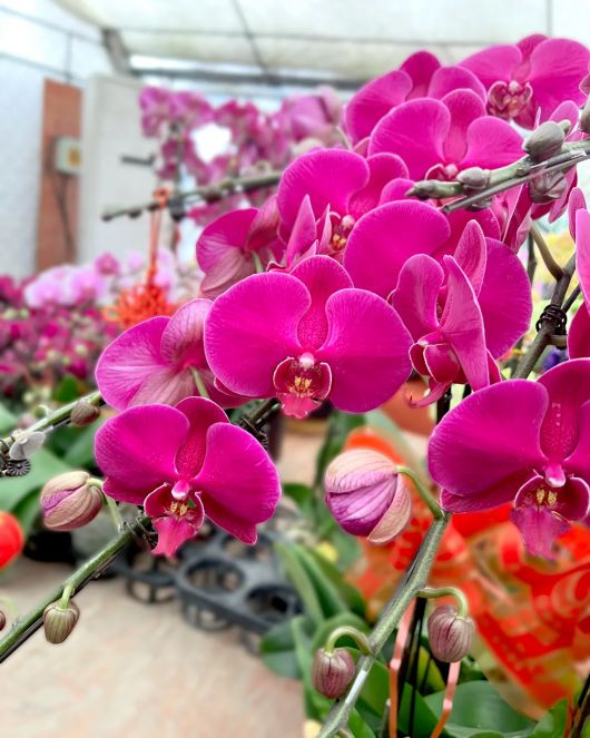 蝴蝶兰,有“洋兰王后”之称,是每年新春佳节最畅销的年宵花之一。市场里的蝴蝶兰种类丰富,有粉色、白色、黄色、紫色等几十种花色,开出的花朵形如展翅飞舞的蝴蝶,姿态优雅灵动。