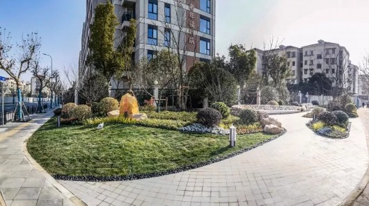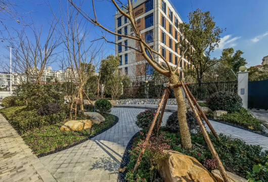 此处以兰“溪”的概念打造中式山水游园景观,设计方以丛生乌桕、丛生朴树、三角枫、金桂、红枫、鸡爪槭、桃树、樱花等作为上中层植物,搭配各种草本和地被,打造出季相分明、色彩缤纷的景观视觉效果。